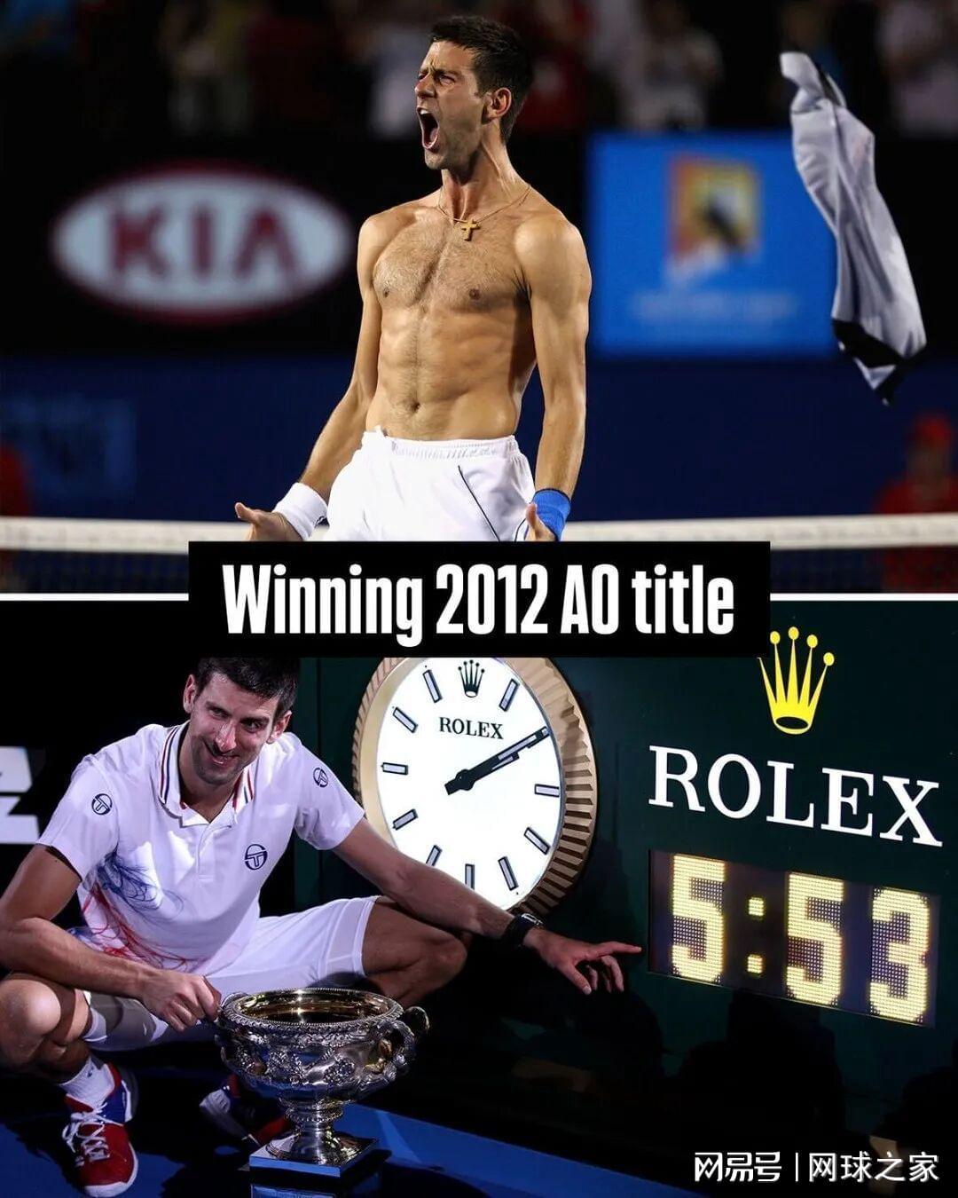 2010年温网16强比赛,德约科维奇以7-5 6-4 3-6 6-4艰难击败休伊特,23岁的他再次撕裂球衣。2012 澳网决赛,德约科维奇耗时5小时53分钟以五盘击败纳达尔,这是史上耗时最长的大满贯决赛,他赛后激情撕衣,将身体与精神的双重压力彻底释放。